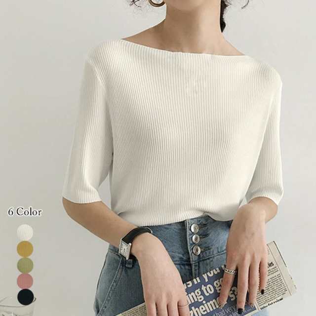 ニットトップス ボートネック ニットソー 無地 プルオーバー シンプル 韓国ファッション