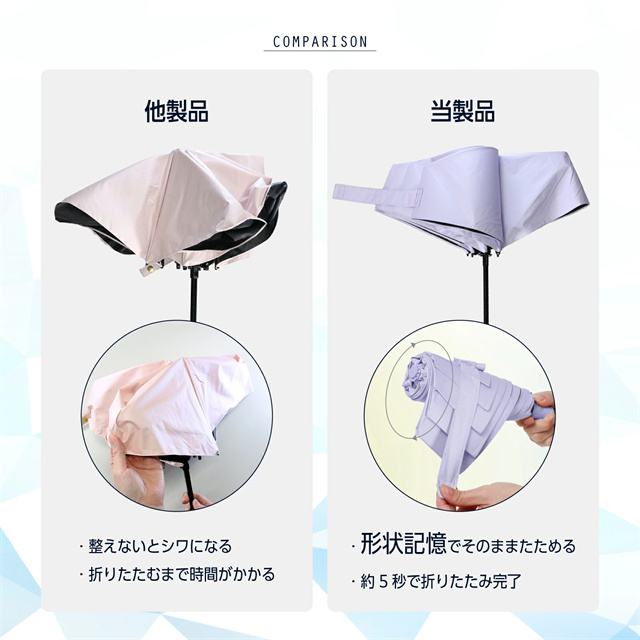 - 今まで使っていた折りたたみは、閉じてから整えたりに手間がかかってましたが、形状記憶は楽です。早く買っておけば良かったと思ってます。
