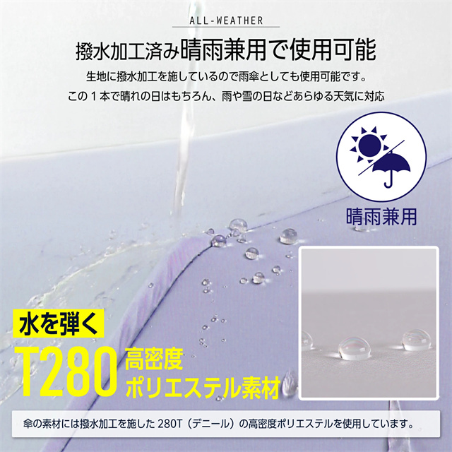 日傘にも雨傘にも使えるお洒落で便利な折りたたみ日傘です。 ボタンを押すだけでラクラク自動開閉♪ UV遮蔽率100%のUPF50+で紫外線の透過をブロック 形状記憶だから折りたたみも簡単です。 |