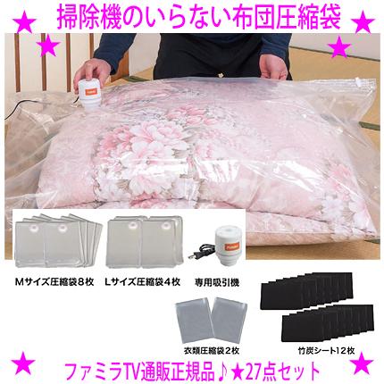 ★ファミラ 掃除機のいらない布団圧縮袋 吸引機+圧縮袋 27点セット