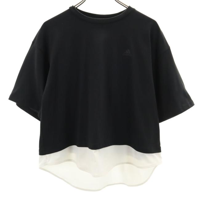 アディダス 5分袖 レイヤード カットソー XL ブラック adidas レディース