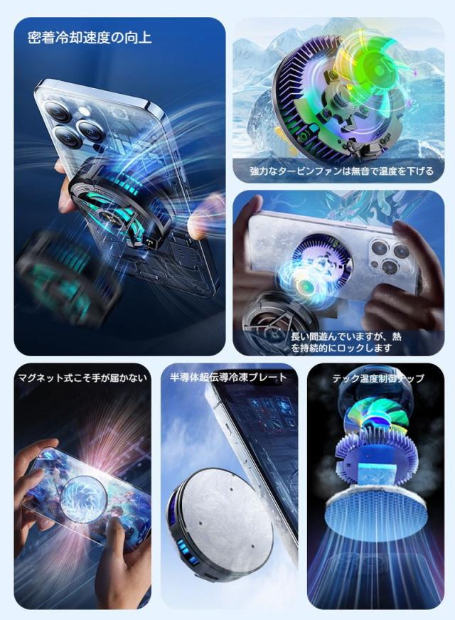 スマホ 冷却ファン 取り外し スマホクーラー マグネット 冷却グッズ スマホ散熱器 Magsafe スマホ 冷却 クーラー 半導体 携帯電話 急速冷却 発熱対策 磁気 ラジエーターファン USB給電 静音 軽量 小型 伸縮式クリップ 多機種対応 ゲーム