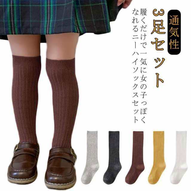 靴下 キッズ ハイソックス 3足セット 3サイズ ニーハイソックス 子供用ハイソックス キッズハイソックス 女の子 柔らかい 秋冬 春 子供靴下 ルーズ ソックス おしゃれ 可愛い 無地 ひざ下 スポーツ 保育園 幼稚園 通園 通学 防寒 ストレッチ ギフト 送料無料