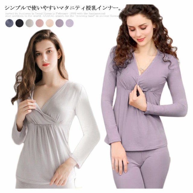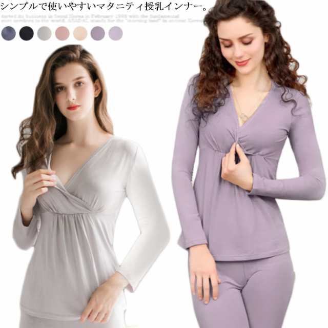 授乳インナー クロスオープン マタニティ インナー 授乳服 マタニティウェア シンプル 下着 妊婦 ママシャツ 重ね着 丈長 長袖 肌着 ゆったり カシュクール 冷え対策 授乳服 トップス 産前 産後 無地 シンプル 送料無料