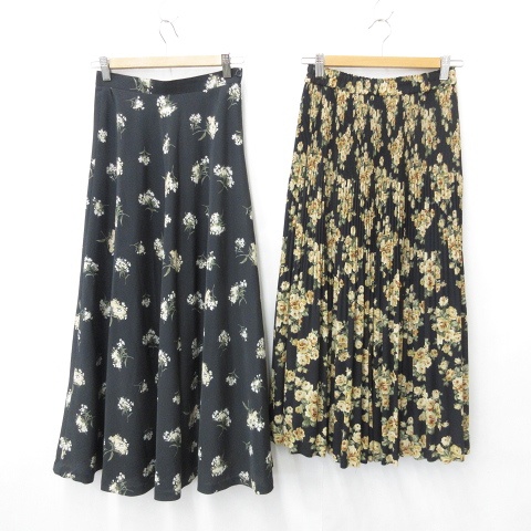 【中古】フィルム FILM アトリエメイク ATELIER MEIKU スカート 2枚セット プリーツ フレア ロング丈 花柄 黒 M