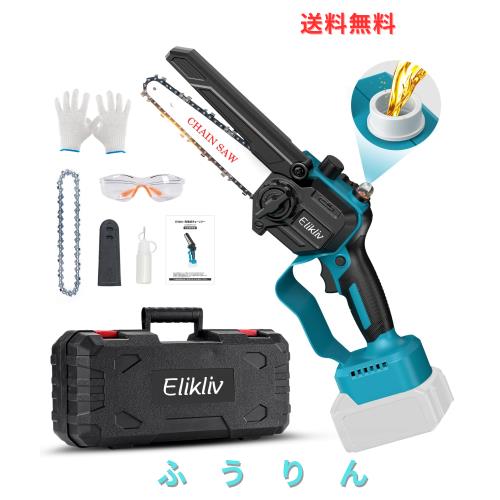【2025年新型】 Elikliv 電動チェーンソー 充電式 高枝切りの延長ポールと接続可能 ブラシレスモーター採用したハンディミニチェーンソー