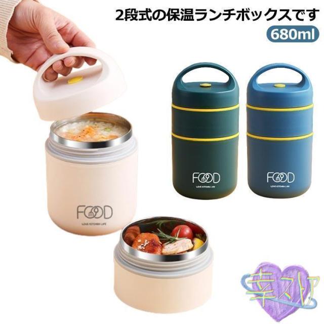 ランチボックス 保温 弁当箱 680ml お弁当箱 2段 ランチジャー 保温ランチジャー 軽量 大容量 ステンレス 保温ランチボックス 真空断熱構造