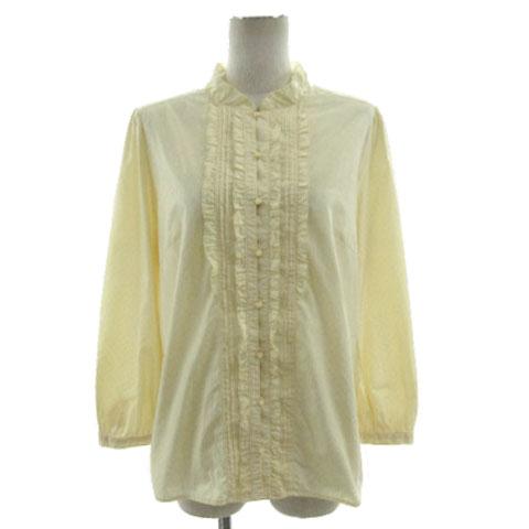 【中古】組曲 KUMIKYOKU シャツ ブラウス フリルネック ピンタック フリル 長袖 半光沢 ドット 黄色系 7 大きいサイズ
