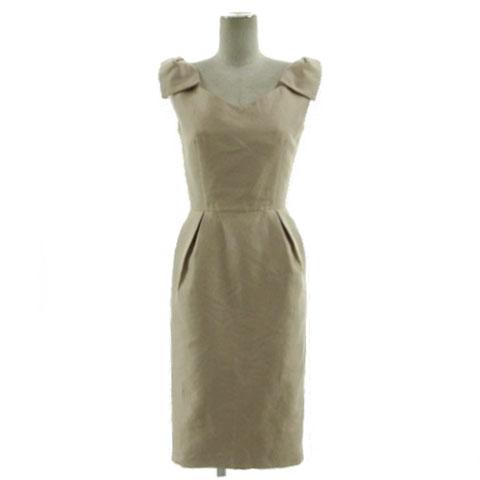 【中古】ラグナムーン ワンピース ドレス ノースリーブ ショルダーリボン装飾 半光沢 ミディ丈 ベージュブラウン