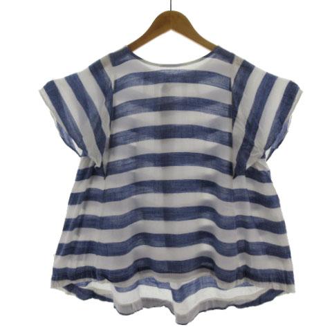 【中古】ピュアルセシン pual ce cin ブラウス 半袖 フレアスリーブ リネン混 ボーダー ブルー 青 ホワイト 白