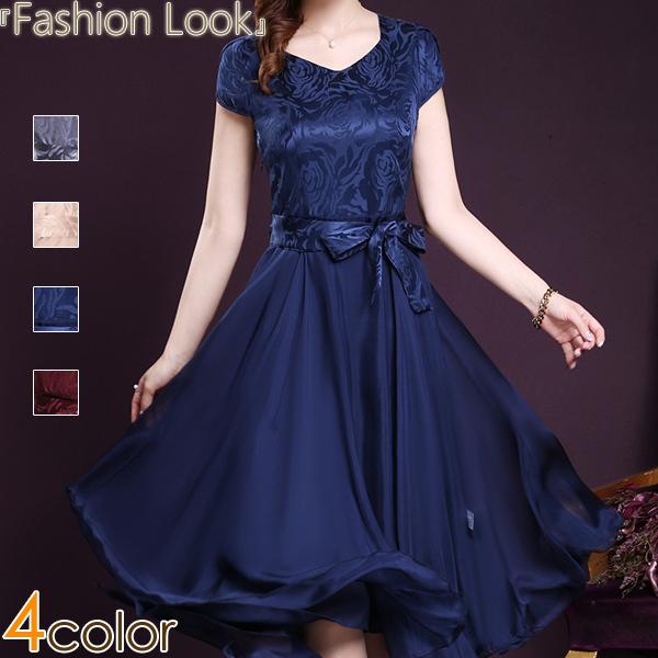ワンピース シフォンワンピース きれいめ 花柄ワンピース ドッキングワンピース ひざ丈ワンピース
