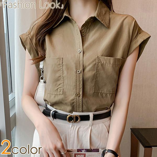 トップス シャツブラウス ノースリーブ 襟 えり シャツ ブラウス 夏 新作