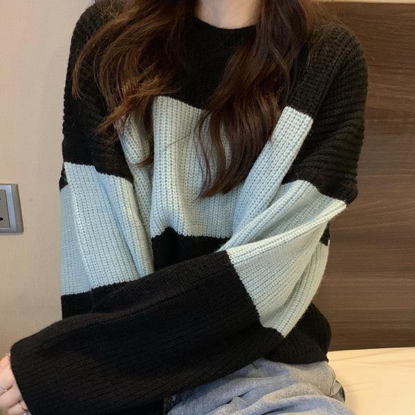 トップス ニット ニットトップス 長袖 ボーダー 切り替え ゆったり ファッション レディス レディース 秋冬 新作