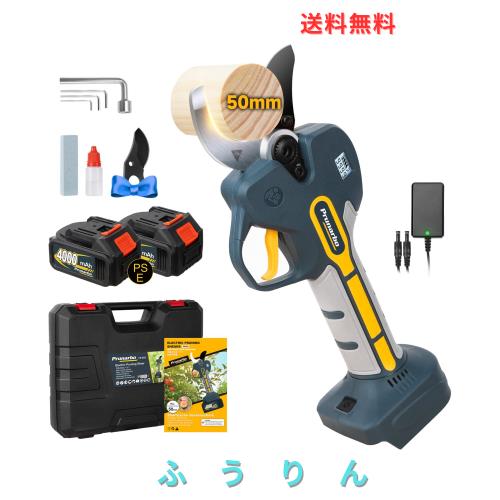 【2025新登場・50mm切断径】 Prunarbo 電動剪定バサミ マキタ互換 4000mAh大容量バッテリー2個付き 5cm 電動ハサミ 剪定バサミ 電動 2段