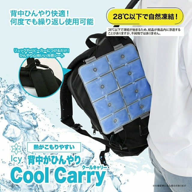 ICYクールキャリー リュック ランドセル ベビーカー 抱っこ紐 背中 冷感 冷たい ひんやり 保冷剤 熱中症対策 猛暑対策 保冷シート ジェル 送料無料