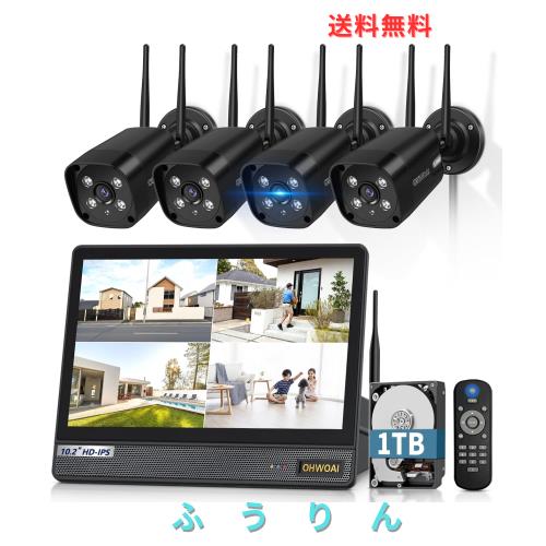 ?{最新発売IPSモニター一体型親機} 最新発売のIPSモニター一体型親機です。10.1インチ液晶モニターが親機と一体になっているので、省スペースで別途モニターを準備する手間も不要です。この防犯モニターは500万画素対応、上質なIPS液晶パネルを採用しており、美しい発色と178°の広視野角で、どこから見ても色が変わらず鮮やかです。さらに、裏面は広い放熱面積で耐久性も優れています。ワイヤレス防犯カメラは4台セットですが、最大10台まで増設可能。全画面を4分割して同時に視聴・再生できます。