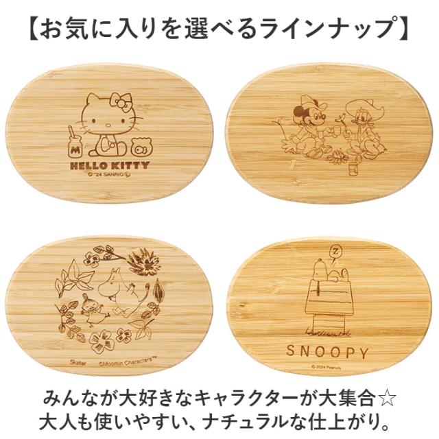 | 商品説明 | 【毎日のランチタイムをもっと豊かに】 ・デイリーに活躍!見た目も可愛らしいキャラクターデザインの竹製ランチボックス 400ml。 【自然な風合いを楽しめる竹製】 ・成長が早く、環境に優しい竹材を採用。1つ1つ異なる、天然素材ならではの表情が魅力♪ 【表面塗装済みで毎日使いに最適】 ・表面にウレタン塗装を施しているから、汚れや傷がつきにくい!誰でも気軽に使えるのが嬉しい◎ 【OLさんや学生さんのランチに】 ・屋外でも片手で持って食べやすい1段タイプ。女性が使いやすい容量400mlサイズ。 (※1)ランチボックスに入るご飯の量は、お茶碗1杯を約200mlとして約1杯分。 【T字仕切りで盛り付けをキープ】 ・おかずが片寄りにくいT字の仕切り付き。ごはんにおかずの色や味が移るのを防止。 【お弁当箱を優しくホールド】 ・ランチボックスをまとめるバンドが付属。フタ裏にパッキン付きで汁漏れを抑え、持ち運び楽々。 (※2)密閉仕様ではありません。パッキンは取り外し可能です。 【お気に入りを選べるラインナップ】 ・みんなが大好きなキャラクターが大集合☆大人も使いやすい、ナチュラルな仕上がり。 |