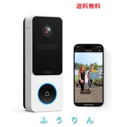 aosu インターホン ワイヤレス 全身が見える パッケージ自動検出 充電式 工事不要 2.4G必要wifi式 2K画素 16:9頭からつま先まで表示 家族