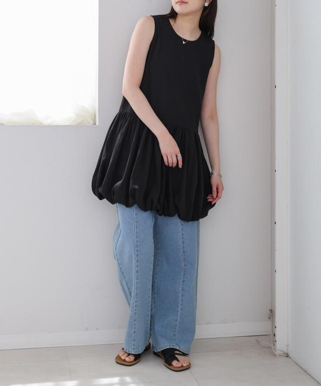 夏にぴったりなノースリーブバルーンチュニックが登場!シンプルなデザインでありながら華やかさを引き立ててくれる一着。どんなスタイルにも馴染みやすい黒と白の2色展開で、カジュアルにもきれいめにも着こなせます。丈感はミニワンピとしても十分に活躍するので、ボトムスなしでさらっと着るのもおすすめ。