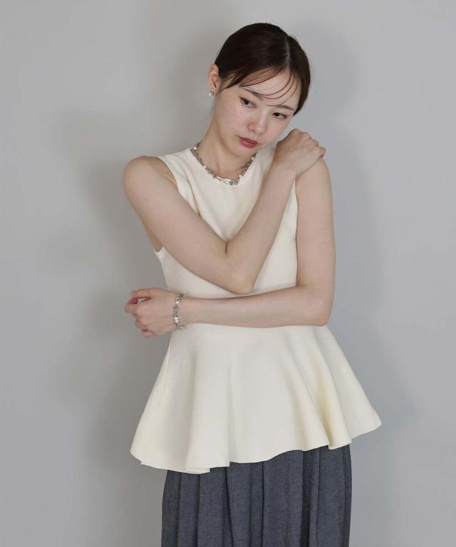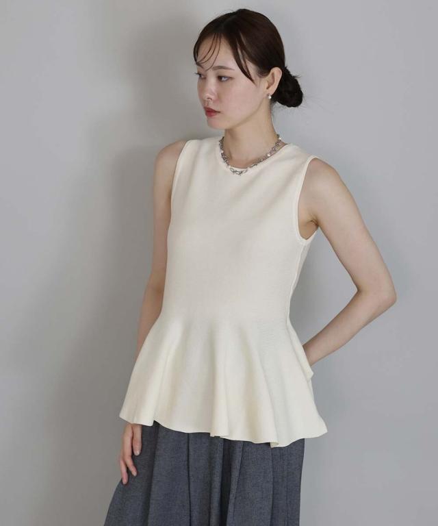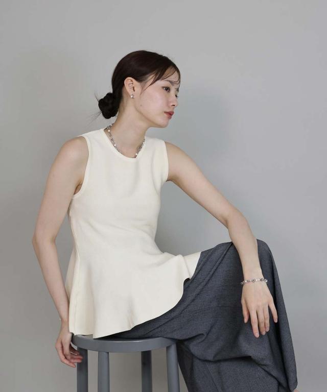 一枚で着映えするキレイめなペプラムサマーニット