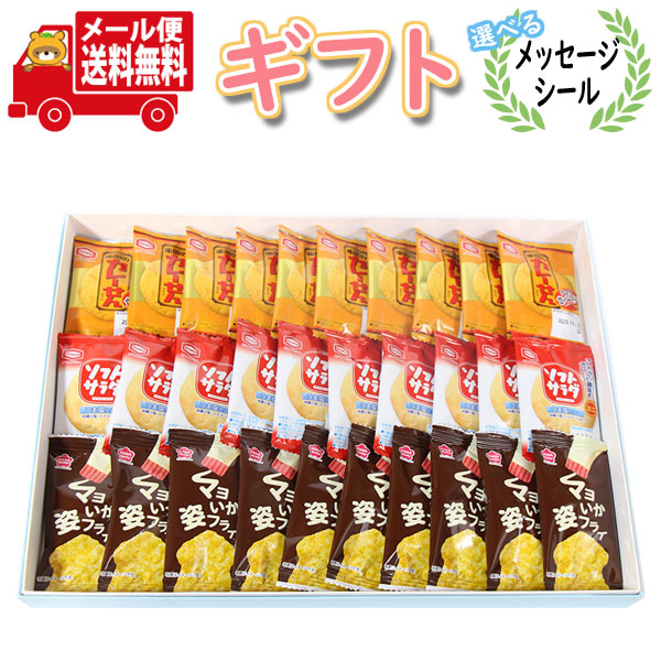 お菓子 ギフト 送料無料 【選べるメッセージシール】 ミニサイズの人気おせんべい2種とマヨいかフライ プチギフト【3種・計30コ】メール便 (omtmb9566g)【お菓子 詰め合わせ ギフト 感謝 個包装 お礼 お返し 挨拶 退職 プチギフト せんべい ギフト】
