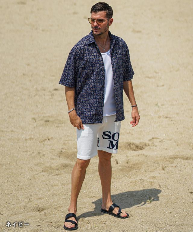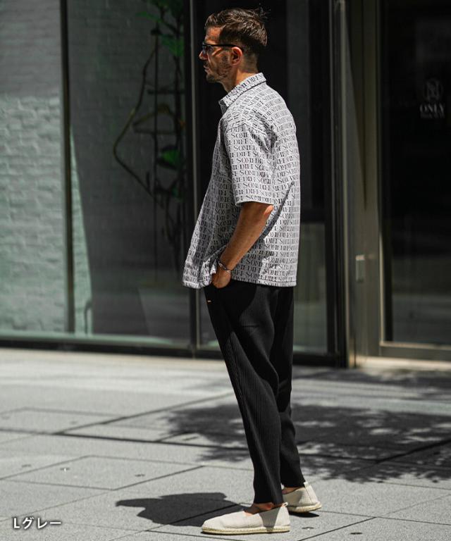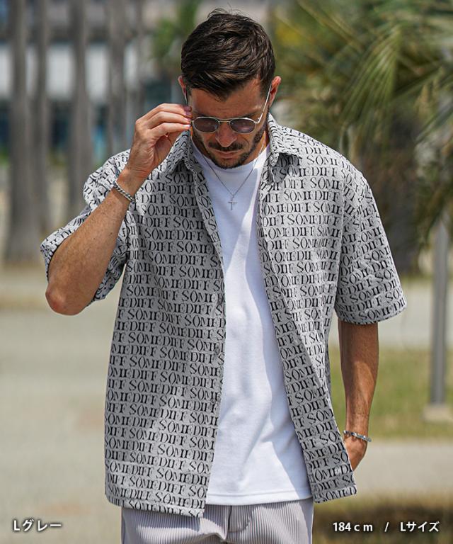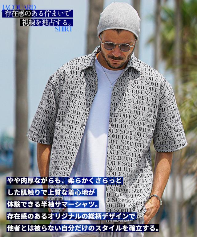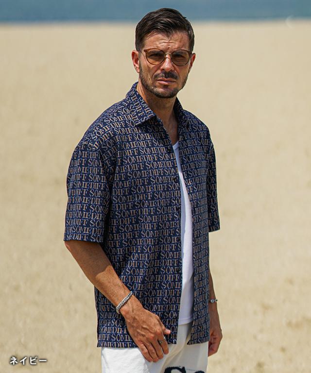 SOMEDIFF(サムディフ)『総柄ジャガード半袖シャツ』【総柄ジャガード半袖シャツ】■Design/デザインSOMEDIFFから、ジャガード織りでデザインされたオリジナルロゴが存在感のある総柄シャツが登場。柔らかく、滑らかな肌触りが心地の良い着用感を実現し、春夏でも快適な着こなしに。ゆったりとしたオーバーサイジングなシャツを纏い、大人のリゾートスタイルが完成する。■Material/素材感柔らかく滑らかな素材を用いて、肌当たりの良い生地感が特徴的。薄手でストレッチの効いた仕上がりになっており、楽に着用することが可能に。