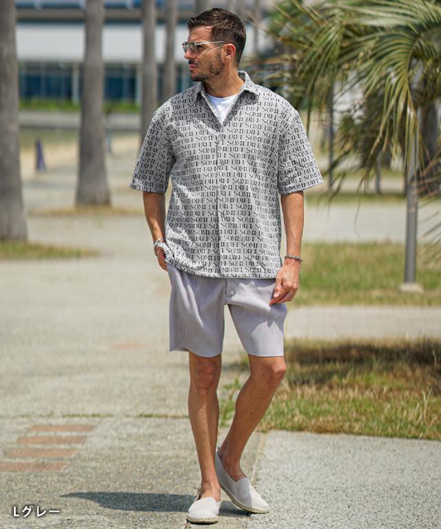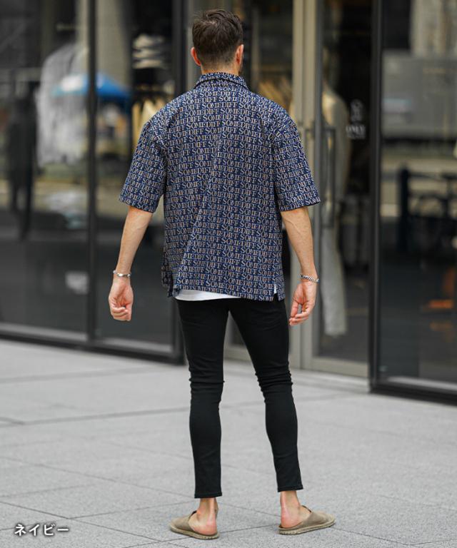 半袖シャツ メンズ ブランド 総柄 ロゴ オーバーサイズ シャツ メンズ シャツ カジュアルシャツ 大きいサイズ グレー ネイビー 夏 夏服 夏物 春夏 メンズファッション リゾート サーフ系 ちょいワル お兄系