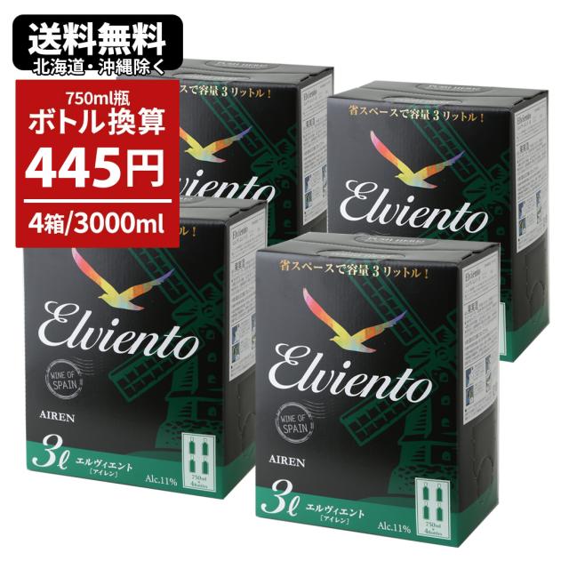 3L ボックスワイン ワイン ワインセット BIB エルヴィエント アイレン 白 3000ml×4個 バッグインボックス 送料無料 一部地域除く 辛口 スペインワイン 紙パック 3L 辛口 白ワイン
