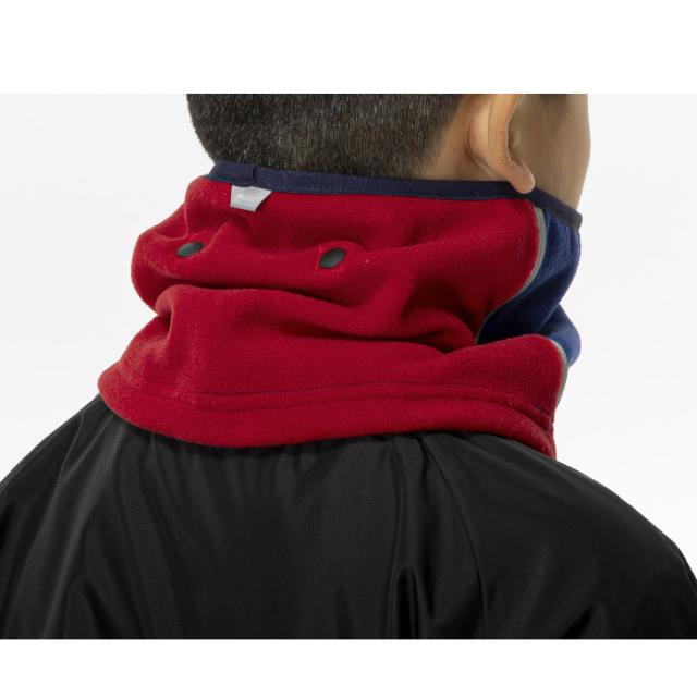 保温性に優れたフリース素材を使用し、首元をしっかり防寒。