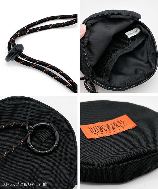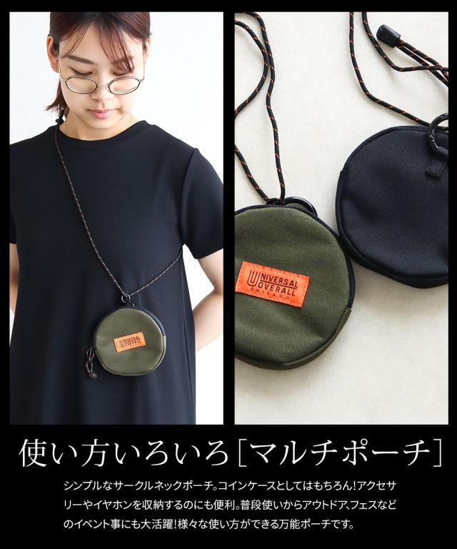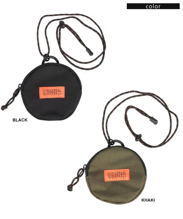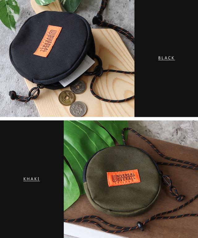 UNIVERSAL OVERALL コインケース メンズ レディース 丸形 ストラップ付 コインケース 小物入れ ミニ財布 小銭入れ スリム コンパクト 黒 ブラック カーキ ユニバーサルオーバーオール サークルネックポーチ uv498qg
