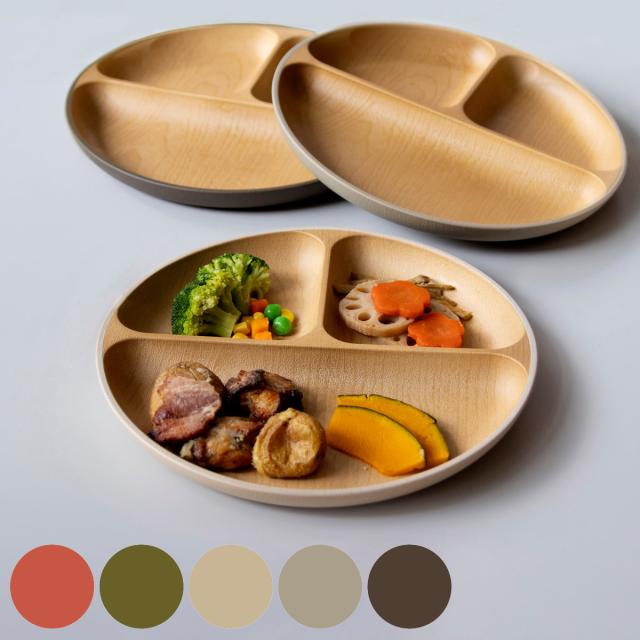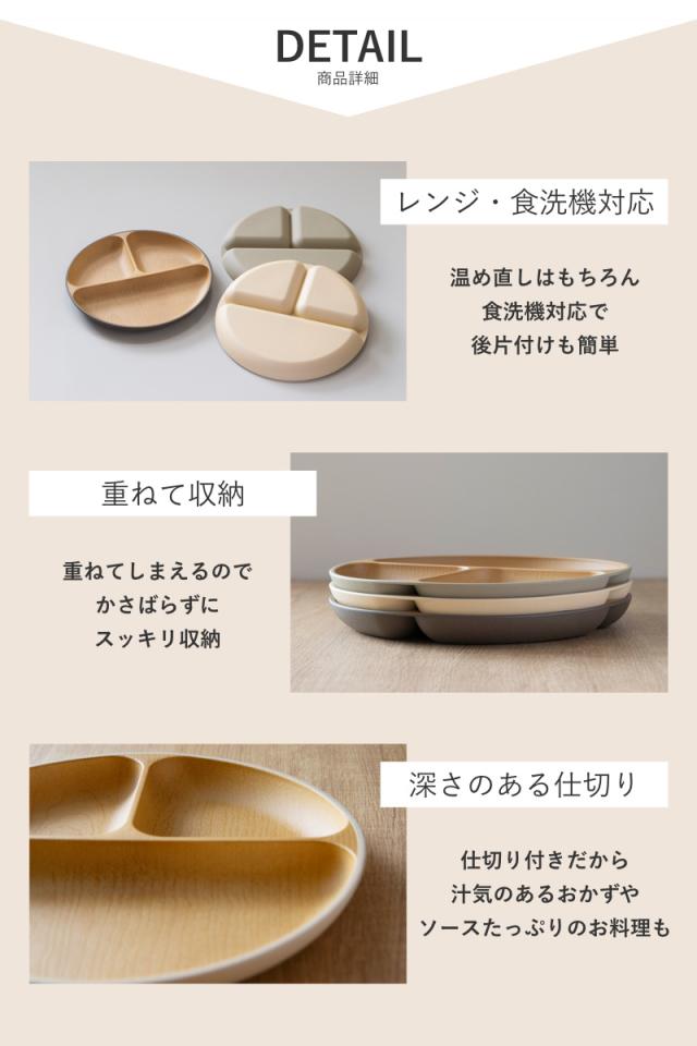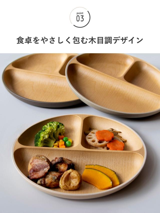 ランチプレート earth color 抗菌 ( 電子レンジ対応 食洗機対応 BPAフリー 日本製 皿 お皿 プレート 子供 子ども キッズ おしゃれ かわいい 仕切皿 ランチ皿 お子様ランチ 3つ仕切り ワンプレート 木目調 抗菌加工 )