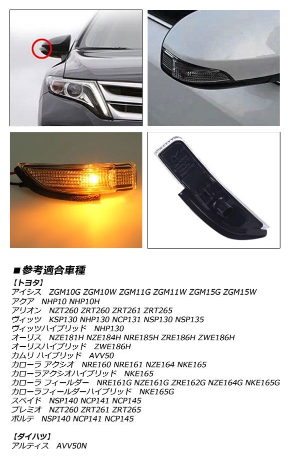 ドアミラーウインカーレンズ 運転席側用 レンズカラー:クリア/点灯カラー:オレンジ ハロゲン トヨタ 汎用 アイシス アクア アリオン ヴィッツ など AP-LL652-R