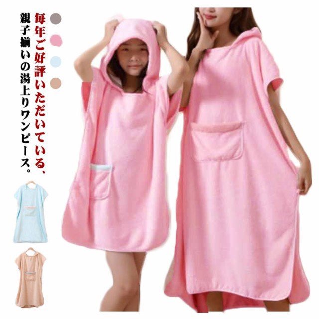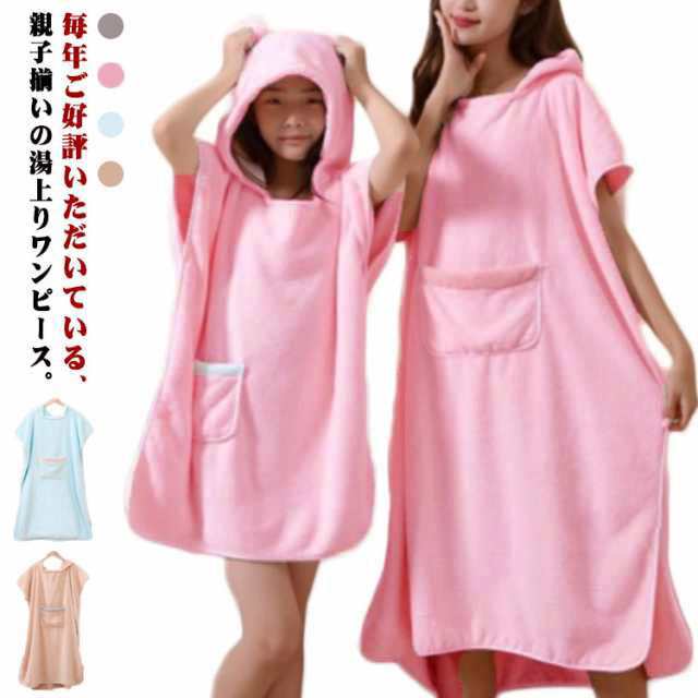 タオルワンピース マイクロファイバー 着るバスタオル 湯上がりワンピース バスローブ タオル バスローブ 湯上り 着る ワンピース バスタオル ワンピース ポケット付き 親子 風呂上がり ビーチタオル ナイトウェア レディース タオル
