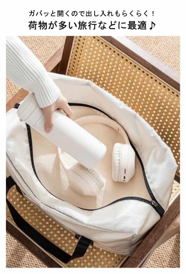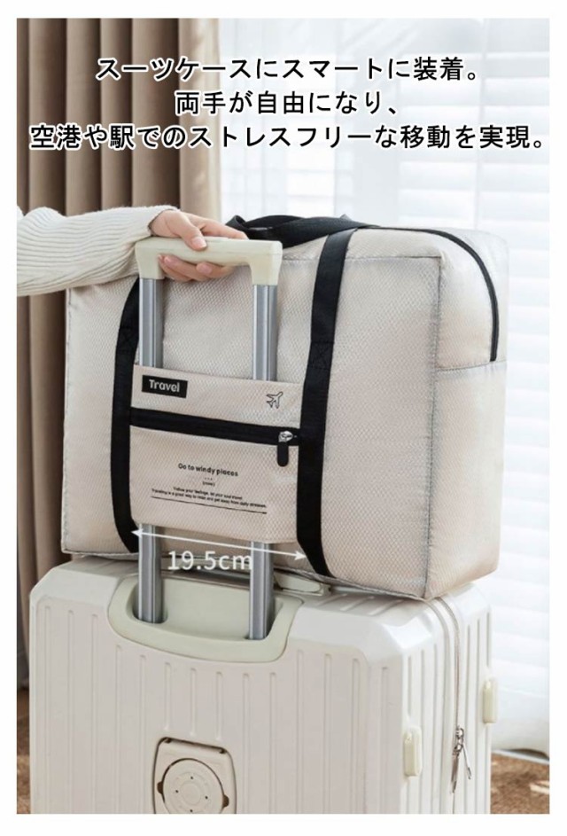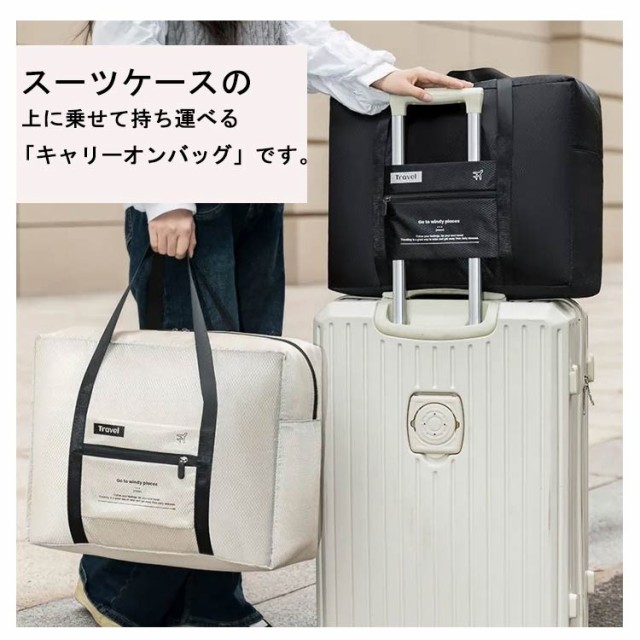| スーツケースの上に乗せて持ち運べる「キャリーオンバッグ」です。 ガバッと開くので出し入れもらくらく!荷物が多い旅行などに最適♪ 使わない時は、かなり小さいポーチ状のミニバッグになるので旅のお供にばっちり! スーツケースにスマートに装着。両手が自由になり、空港や駅でのストレスフリーな移動を実現。 マチもあり荷物もいっぱい入るので旅行のキャリーバッグとこの手荷物用のこのボストンバッグで十分です。 大容量なので、旅行はもちろんアウトドアや防災バッグ、または入院の際のバッグとしてなど幅広く活躍! | |