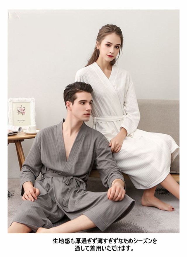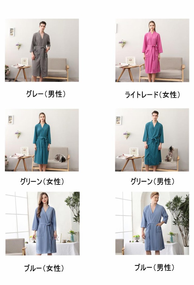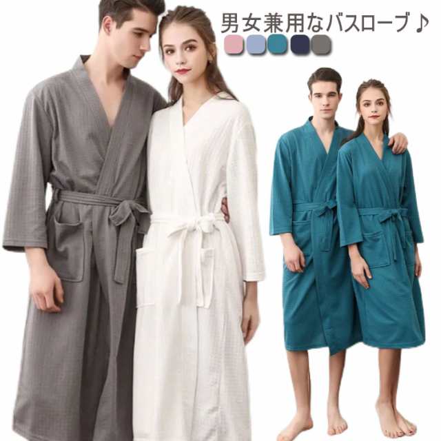 バスローブ レディース メンズ 風呂上がり 夏 薄手 通気 吸水速乾 膝丈 七分袖 バスローブ ワッフル ルームウエア ナイトガウン 寝巻き パジャマ 寝間着 男女兼用 部屋着 ナイトウエア 無地 ゆったり 大きいサイズ ペア 旅館 温泉 ホテル 春 秋 送料無料