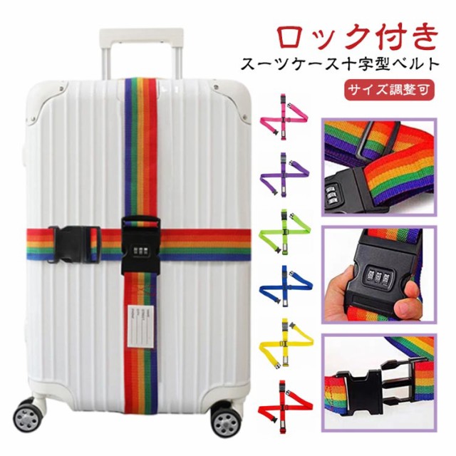 ロック付きスーツケース十字型ベルト キャリーケース スーツケーストラベルベルト スーツケースベルト ワンタッチ 便利グッズ サイズ調整可 紛失防止 おしゃれ 盗難防止 カラフル 旅行 スーツケースバンド