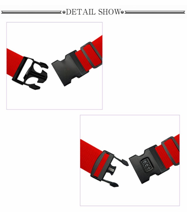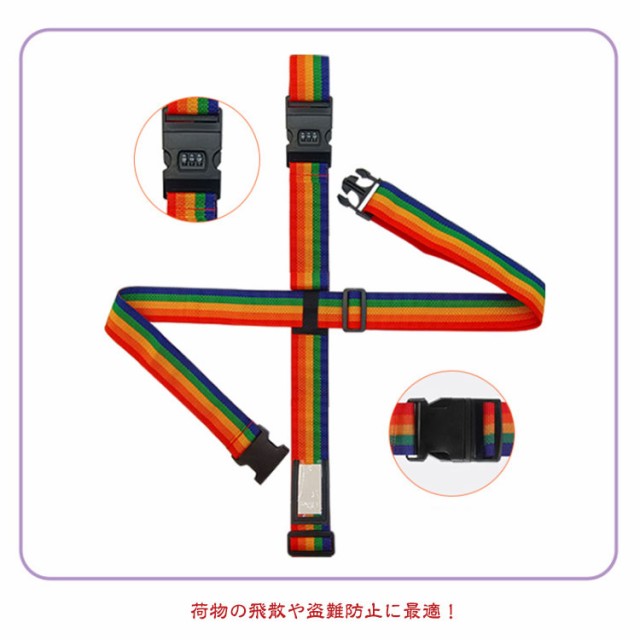| 【スーツケース十字型ベルト】【ロック付き】 荷物の飛散や盗難防止に最適! 大切な荷物を守る:十字型なので、スーツケースが突然開いてしまうことを有効に防止できます。 カチッとバックルを留めるだけの簡単装着!アジャスター付きで長さ調節もスムーズに可能♪ 鮮やかなカラーのスーツケースベルトは自分の荷物をひとめで見分けるのに便利です! くるっとまとめておけばコンパクトに♪使わないときはカバンの中に携帯できるのも嬉しいポイント! 旅行や出張に1つあると移動が楽チンになるアイテム! | |