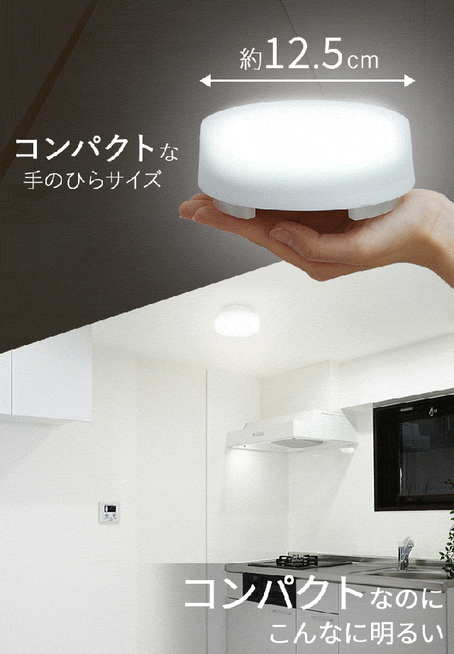 小型で場所を取らないので、トイレや洗面所、廊下やクローゼットなどの照明におすすめです。