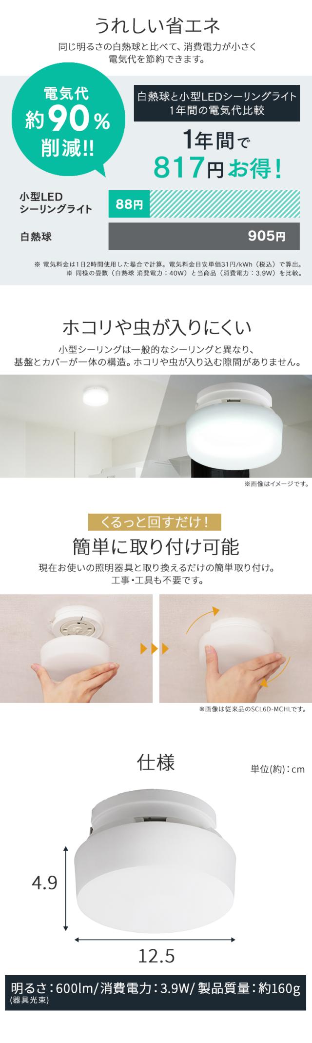 シーリングライト おしゃれ ledシーリングライト 小型 アイリスオーヤマ 照明 天井 照明器具 天井照明 led 簡単取付 電球色 昼光色 コンパクト キッチン 洗面所 トイレ ライト 省エネ 小型シーリングライト 600lm 高効率タイプ SCL6L/D-H * 安心延長保証対象