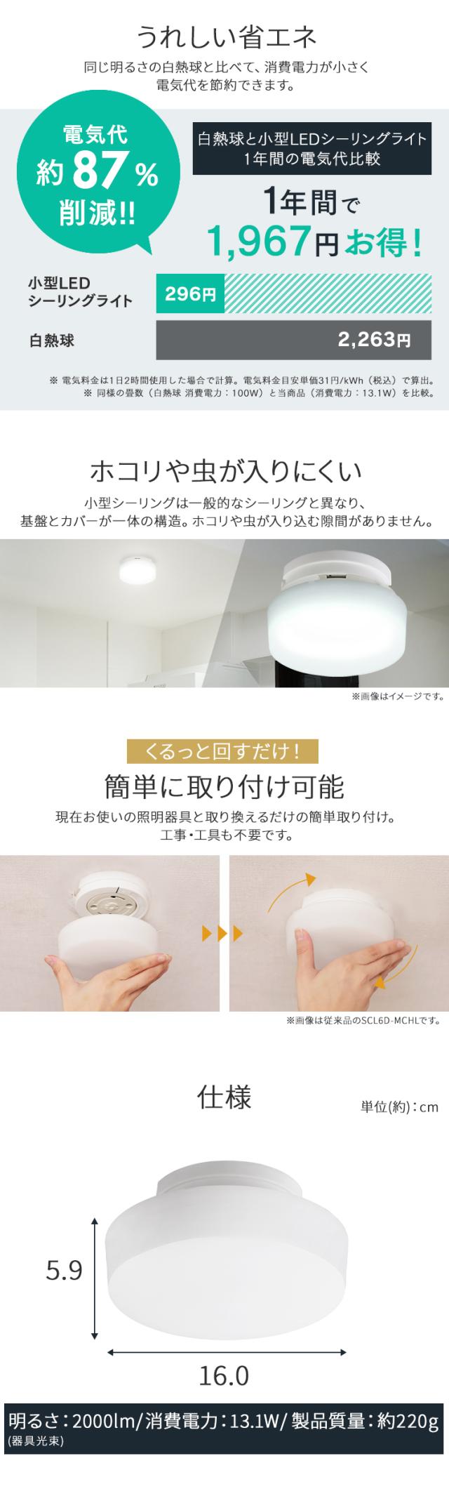 シーリングライト おしゃれ ledシーリングライト 小型 アイリスオーヤマ 照明 天井 照明器具 天井照明 led 簡単取付 電球色 昼光色 コンパクト キッチン 洗面所 トイレ ライト 省エネ 小型シーリングライト 2000lm 高効率タイプ SCL20L/D-H * 安心延長保証対象