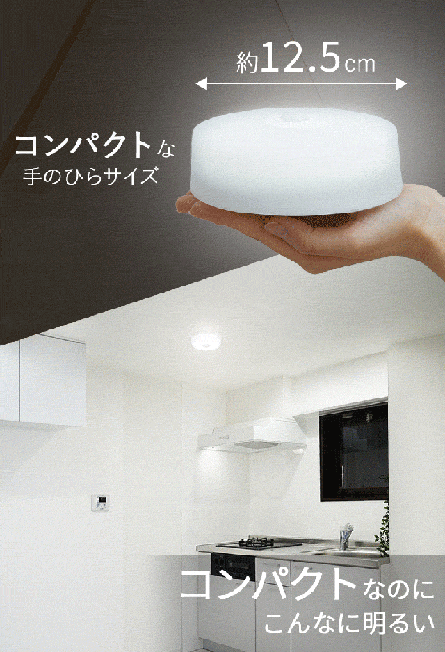 小型で場所を取らないので、トイレや洗面所、廊下やクローゼットなどの照明におすすめです。