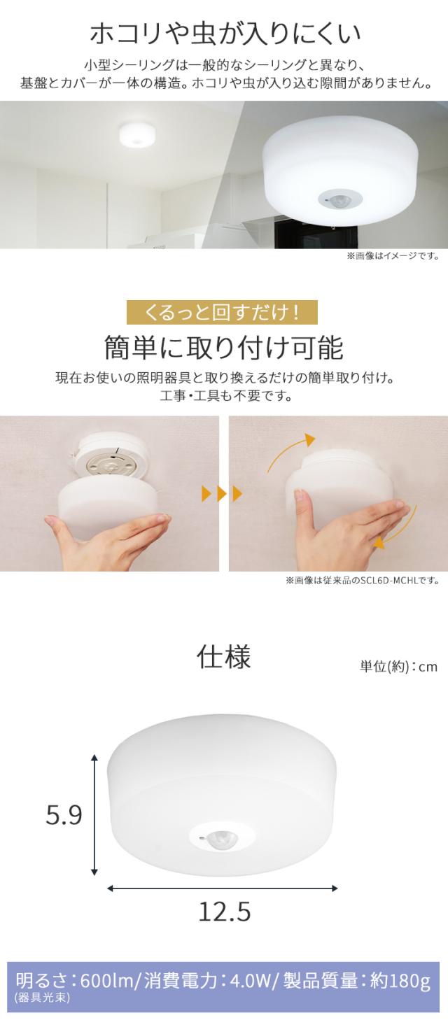 ★クーポンあり★ シーリングライト おしゃれ ledシーリングライト 小型 人感センサー アイリスオーヤマ 照明 天井 照明器具 led 簡単取付 電球色 昼光色 コンパクト キッチン 洗面所 トイレ ライト 省エネ 小型シーリングライト 600lm 高効率 SCL6L/D-MS-H *