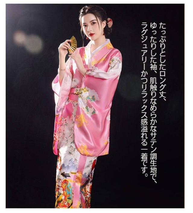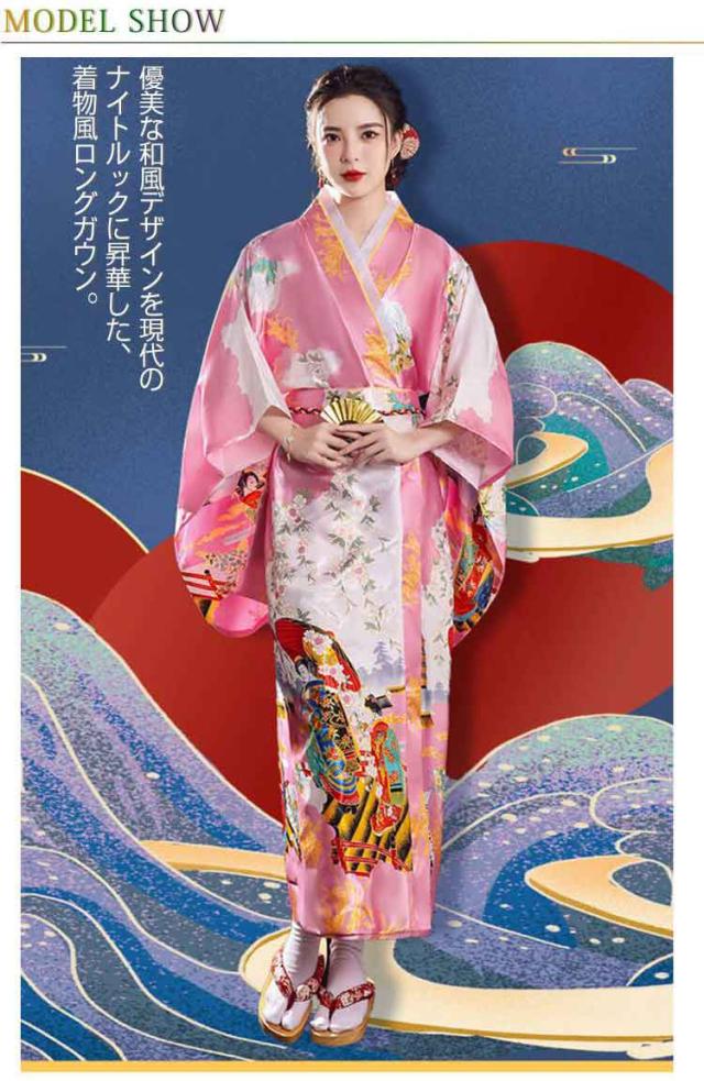 | 優美な和風デザインを現代のナイトルックに昇華した、着物風ロングガウン。 たっぷりとしたロング丈、ゆったりした袖、肌触りなめらかなサテン調生地で、ラグジュアリーかつリラックス感溢れる一着です。 同素材のウエストベルト付きでスタイル調整も自由。 | |