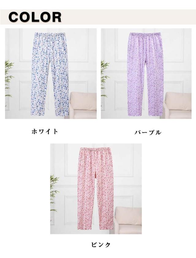 ステテコ レディース 春夏 パジャマ 花柄 長ズボン ロングパンツ リラックスウェア 薄手 ルームパンツ ルームウェア 寝間着 部屋着 ワイドパンツ コットン ひざ下 イージーパンツ ボトムス 涼しい 無地 ゆったり 可愛い 大きいサイズ 通気性 ゆるパンツ リラックス