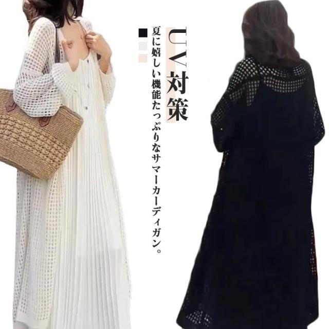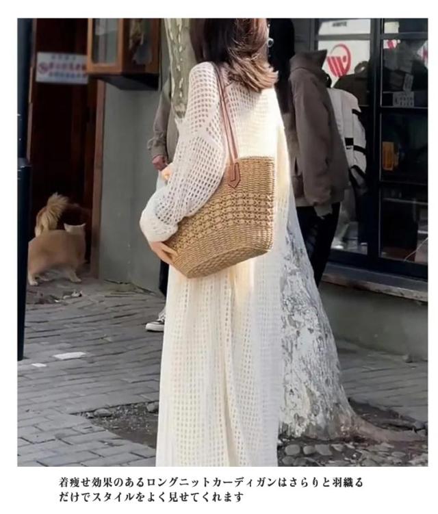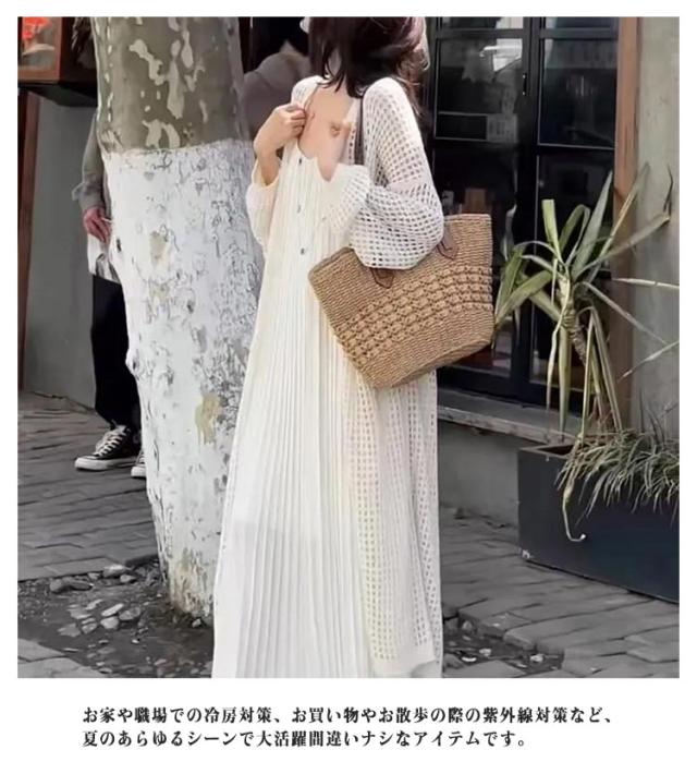 | 夏に嬉しい機能たっぷりなサマーカーディガン。 さらりと柔らか涼しげで素肌に触れても心地よい。 着痩せ効果のあるロングニットカーディガンはさらりと羽織るだけでスタイルをよく見せてくれます お家や職場での冷房対策、お買い物やお散歩の際の紫外線対策など、夏のあらゆるシーンで大活躍間違いナシなアイテムです。 どちらもお尻まですっぽり隠れる丈感なので、気になる腰回りもしっかりカバーします | |