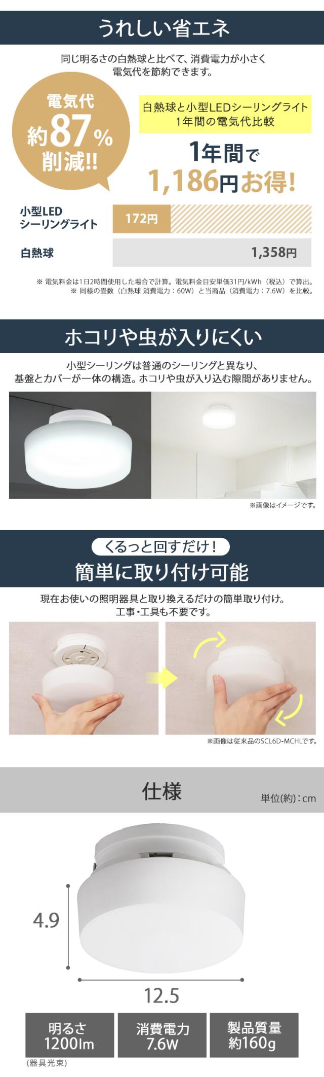 シーリングライト おしゃれ ledシーリングライト 小型 アイリスオーヤマ 照明 天井 照明器具 天井照明 led 簡単取付 電球色 昼光色 コンパクト キッチン 洗面所 トイレ ライト 省エネ 小型シーリングライト 1200lm SCL12L/D-H 高効率タイプ *