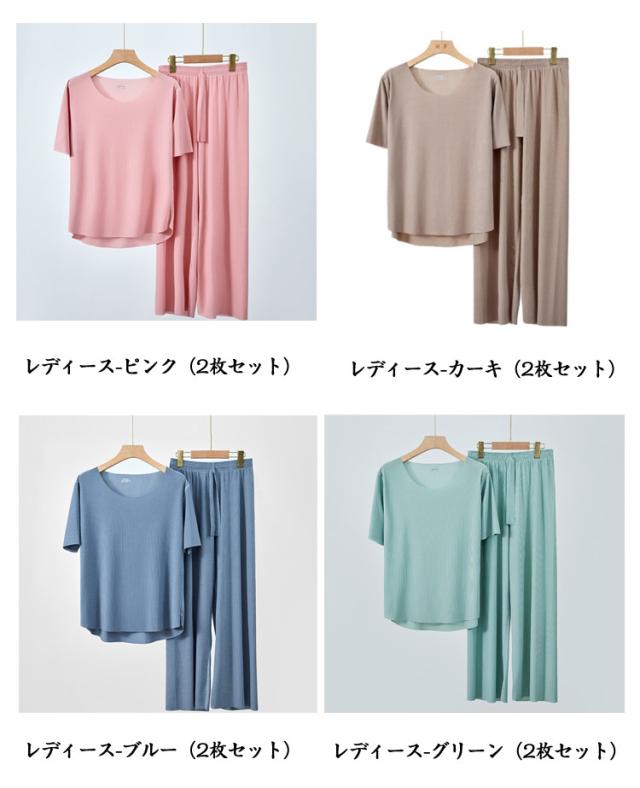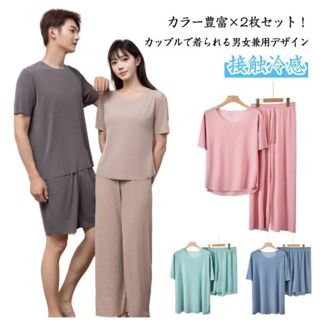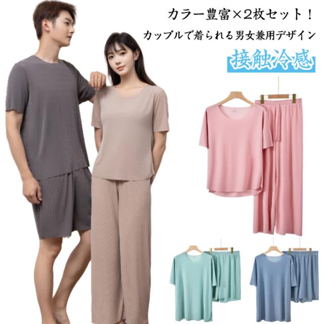 2枚セット 接触冷感 パジャマ 上下セット ルームウェア レディース メンズ アイスシルク 半袖 長ズボン 短パン ワンピース 大きいサイズ 夏用 清涼感 冷感素材 リラックス 涼しい 寝巻き 部屋着 プレゼント 母の日 父の日 カップルペア