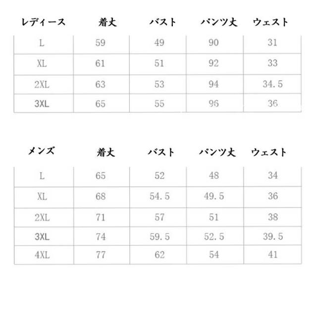 | サイズについての説明 | サイズ表は画像をご参照ください *レディース用の4XLサイズはありません。 |