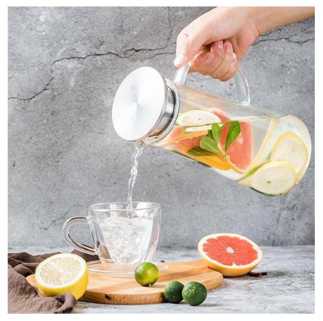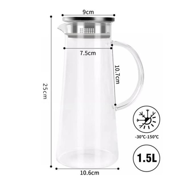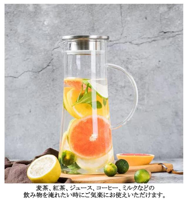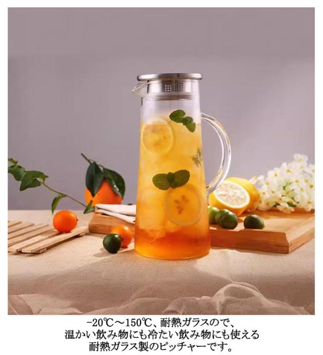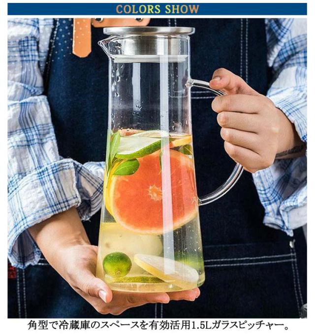 | 【1500ml】【直火対応可能】【ステンレス茶こし一体型蓋】 角型で冷蔵庫のスペースを有効活用1.5Lガラスピッチャー。 ボトルの口径が大きく、手が直接差し込めて清潔できます 麦茶、紅茶、ジュース、コーヒー、ミルクなどの飲み物を淹れたい時にご気楽にお使えいただけます。 -20℃〜150℃、耐熱ガラスので、温かい飲み物にも冷たい飲み物にも使える耐熱ガラス製のピッチャーです 角型のサーバーは冷蔵庫に収納した際にムダなくスッキリみせてくれます。 | |