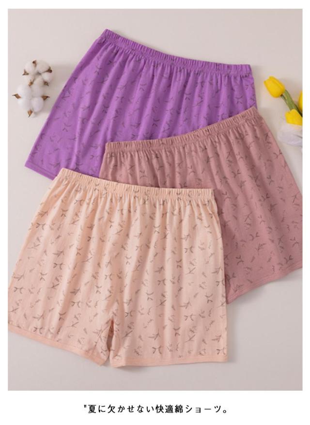 2枚セット ショーツ レディース ストレッチ くつろぎ トランクス 花柄 ママ シンプル ルームウェア ボトムス ショーツ 女性 下着 レディース 快適 ルームウェア 3分丈 大きいサイズ 母の日 ギフト プレゼント